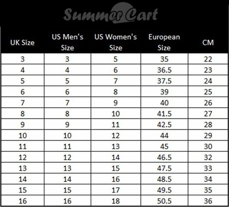 Shoe sizes table